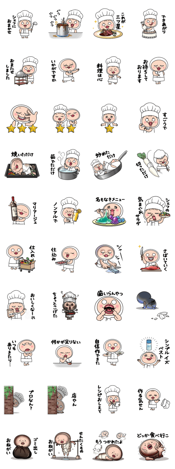 一流シェフおしめちゃんと共に毎日の炊事を三ツ星レストランで働く気分で乗り切るスタンプ。料理/グルメ/フレンチ/グランメゾン