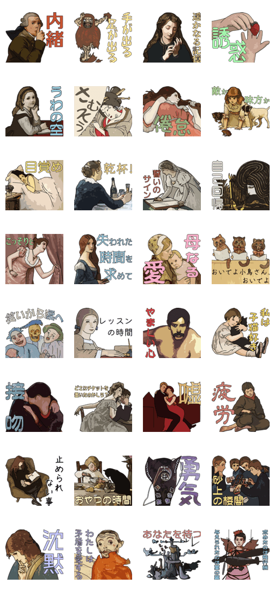 西洋美術や日本美術の巨匠たちが描いた、美術史に残る名画と作品タイトルをスタンプにしました!