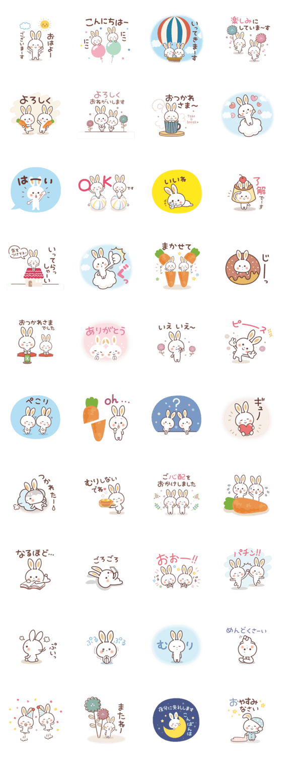 ふんわりとしたうさぎが可愛い♪ やさしいタッチの「ゆるっと感情を伝える♪」スタンプです。 敬語もたくさん入っていて使いやすい!