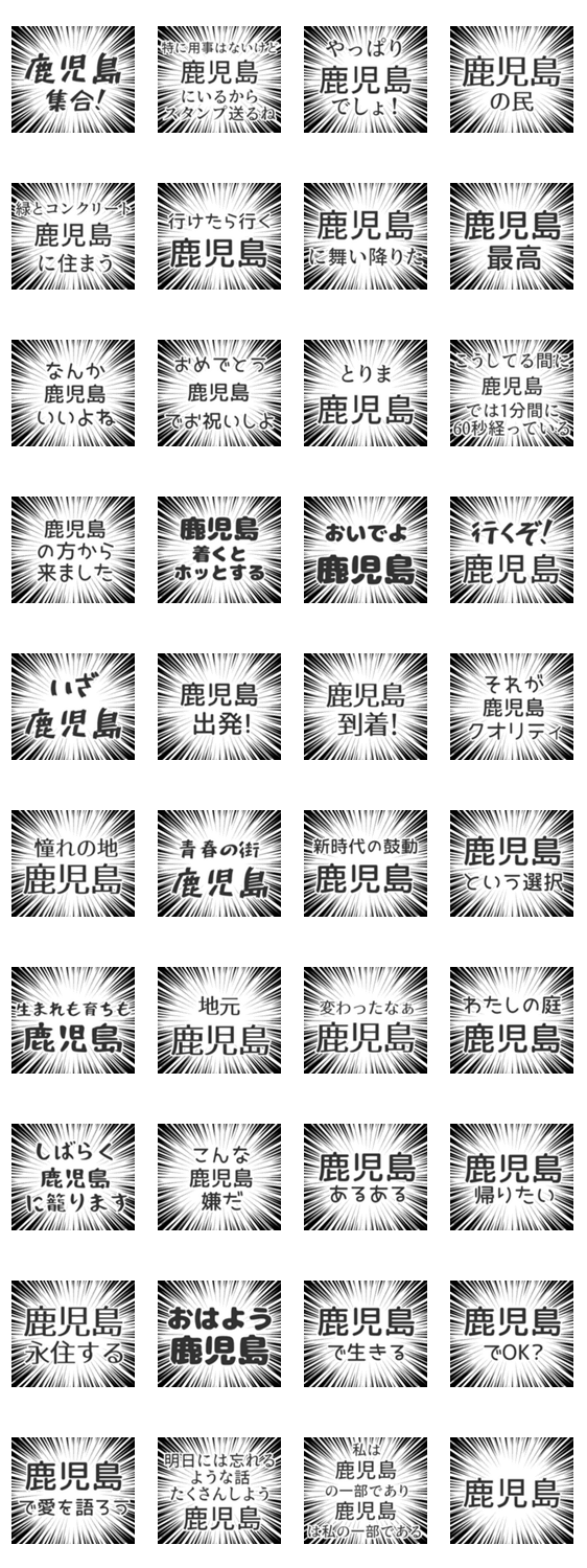 地元のための漫画風セリフスタンプ。集中線で叫べ。地元の人にも憧れてる人にも。面白いのが見つかると嬉しい。集中線。地元愛。