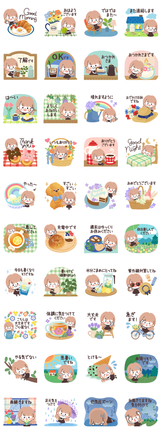 初夏~梅雨の気づかい言葉、お花&スイーツいっぱいお仕事中にも使える敬語スタンプ♪毎日、年中ずっーと使えます♪甘さ控えめ大人女子.丁寧.ママ友.挨拶.おしゃれカフェ