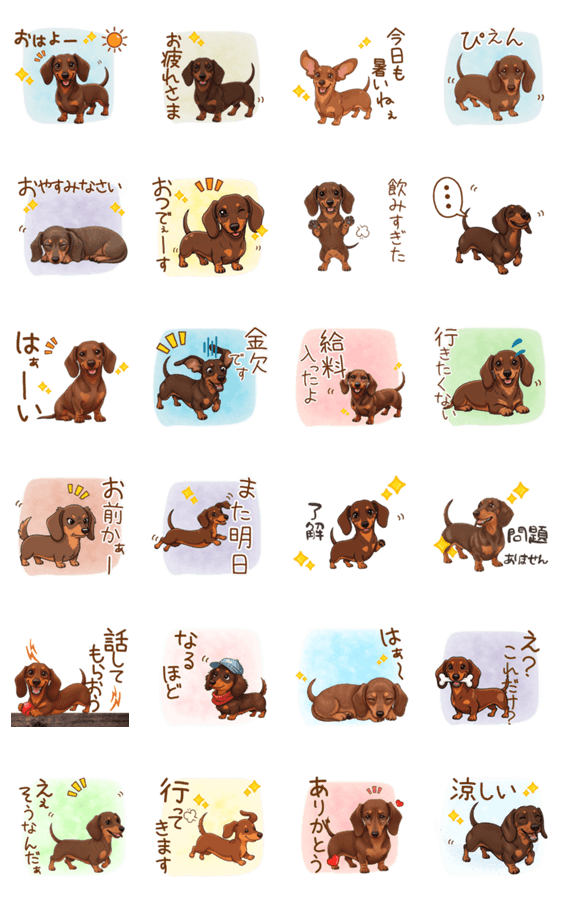元気で可愛いミニチュアダックスが、毎日の気持ちをほっこり伝えます!仕事もプライベートも使いやすい日常スタンプです。
