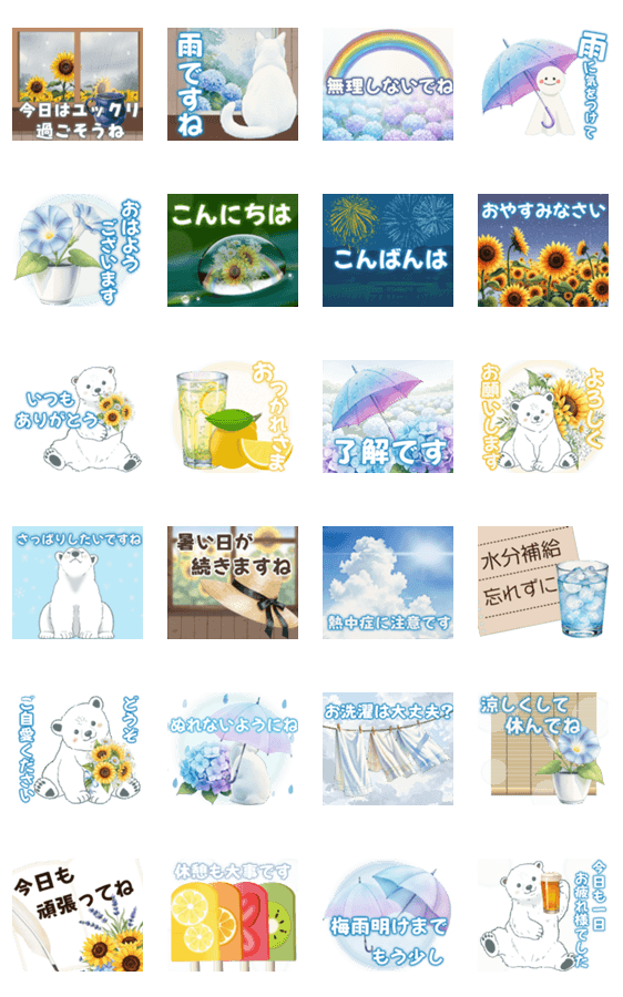 雨•梅雨•夏•毎日使える挨拶スタンプ -LINEスタンプマニア