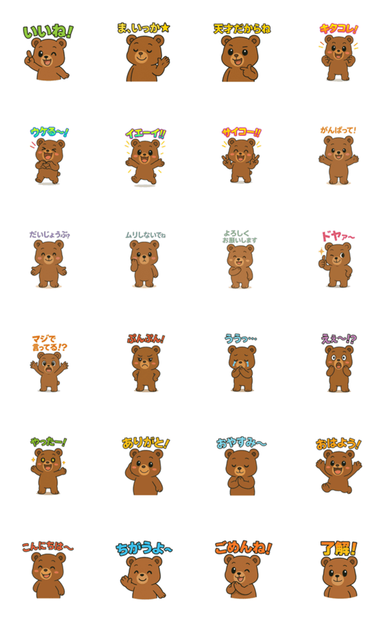 ほめ上手なくまさんが毎日を応援!友達とのやりとりが楽しくなる癒し系スタンプです。