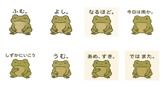 静かにひとことをつぶやく、やさしいカエルのスタンプです。