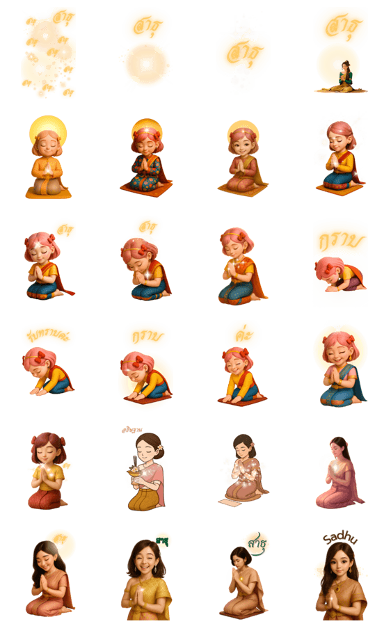 「サードゥ」は仏教用語で、善行や功徳に賛同・感謝を表す言葉です。「その通り」「ありがたい」に近い意味があります。 ※このスタンプはトークルームで大きく表示されるBIGスタンプです。
