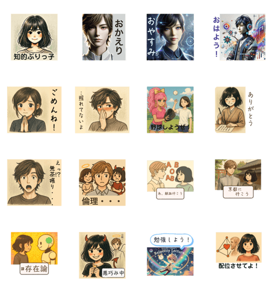 noteで展開しているChatGPTとの対話から、調子に乗ってスタンプ作りました。 note : deep_gibbon8736