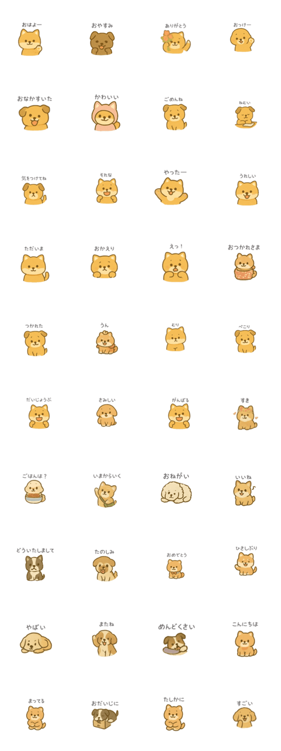 そっと寄り添う、わんこのひとこと。 忙しい毎日に、ちょっと癒しをくれる、やさしい気持ちのスタンプです。