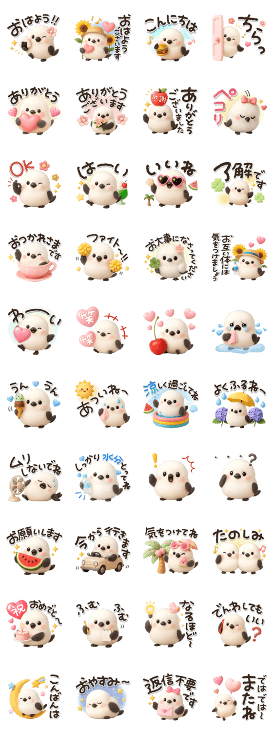 大きめのくっきり文字で、見やすい!使いやすい!シマエナガのかわいい3Dスタンプです♪