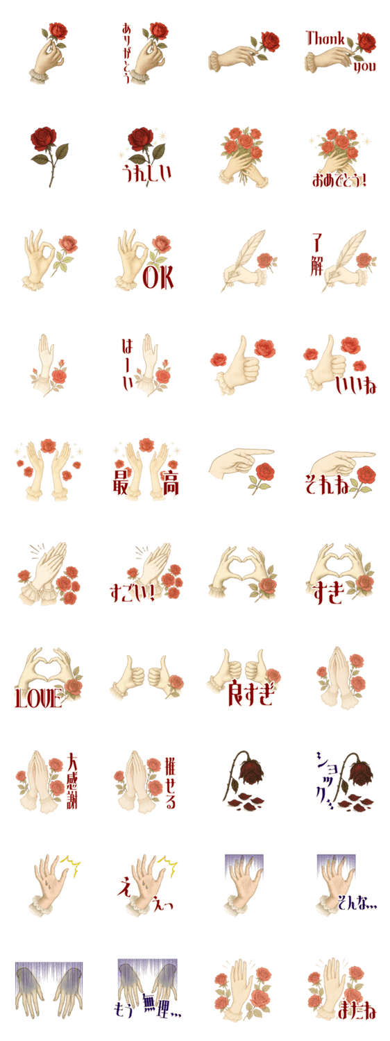 ヴィクトリアン風 ハンド&ローズ【親しみ】 -LINEスタンプマニア