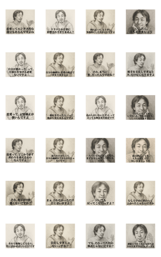 失恋した友人に寄り添い、時に厳しいひろゆき 現実主義/名言製造機/相談/アドバイス/カップル/結婚/同棲/彼氏/彼女/友達 ※LINE Creators Collaboration ひろゆきのコラボ参加スタンプです。