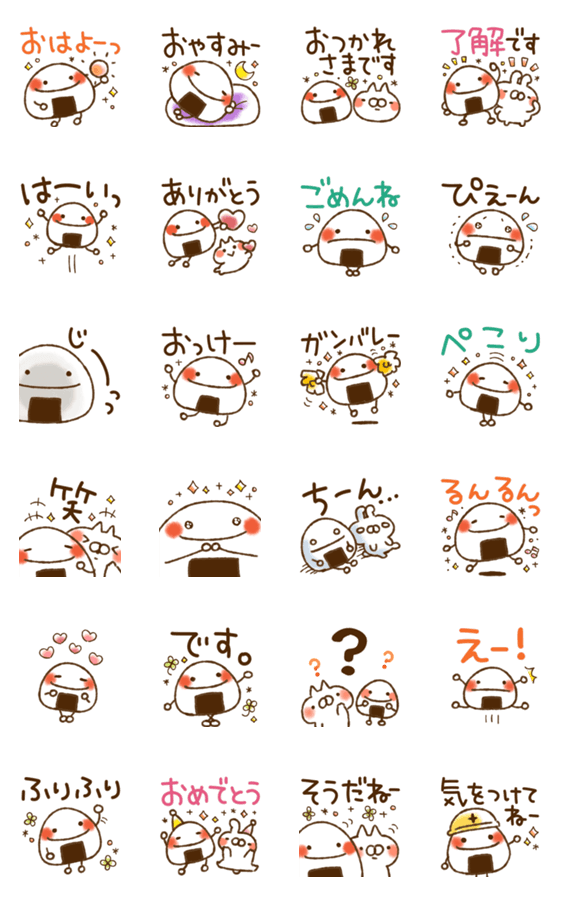 使いやすい文字入り表現で動く絵文字の飛び出す版♡うごく/おにぎり/おむすび/挨拶/無難/基本/ポップアップ/でかもじ/デカ文字/猫/ねことうさぎの名前より/山田まぽん作