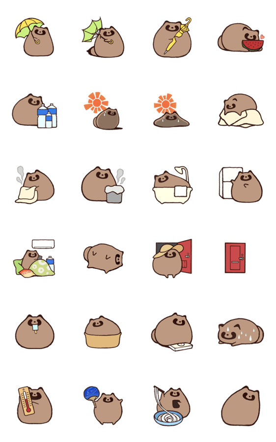 日本の夏に負けそうなたぬきのスタンプです。