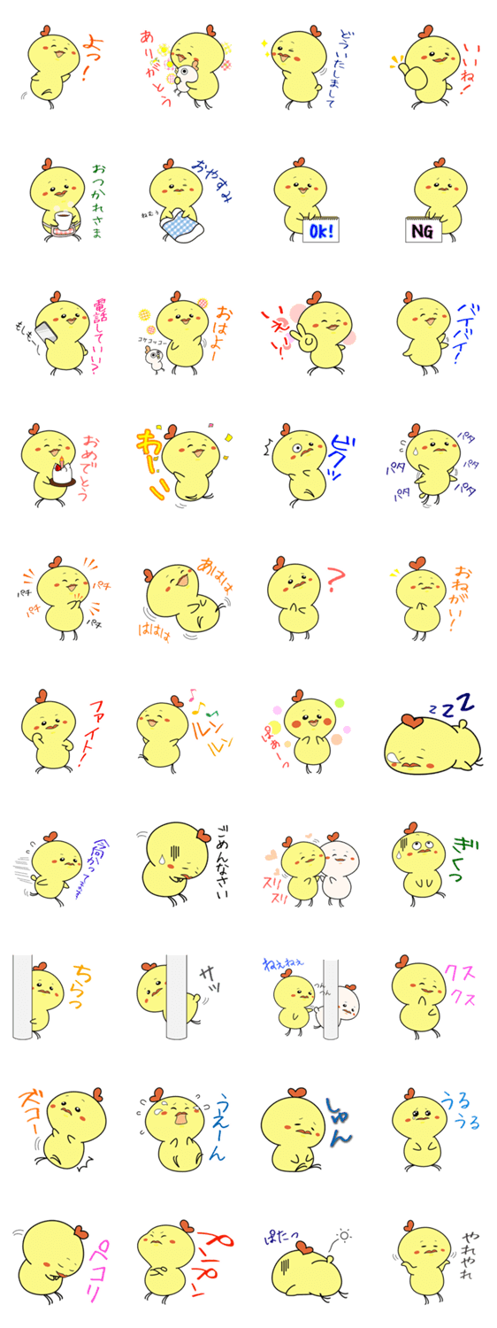 日常会話で使いやすい言葉を、可愛いひよこのスタンプにしました。