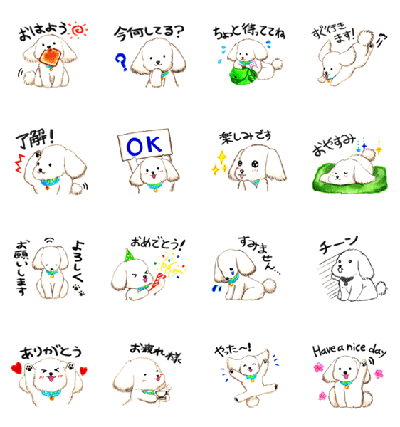 白くてふわふわキュートなプードルのこてつくんのスタンプです。