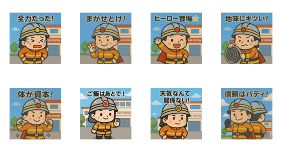 地域の安全を守る消防士の日常生活で使えるスタンプ集です。