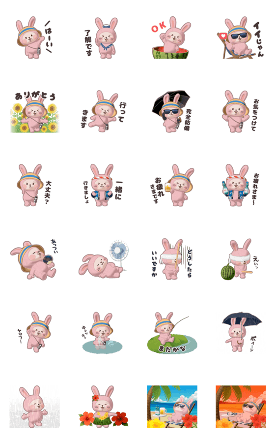 動く!ぬいぐるみうさぎ:夏 -LINEスタンプマニア