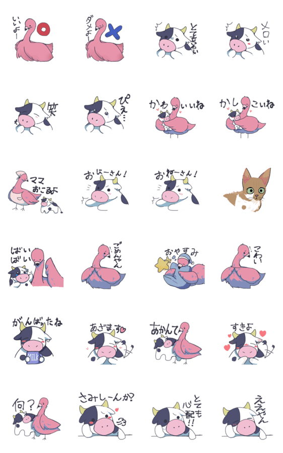 フラミンゴと牛 -LINEスタンプマニア