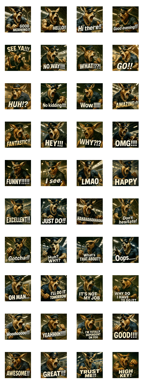 ムキムキ駅員カンガルー、爆誕!サングラスで乗車チェックも全力!迫力と笑い満点のスタンプ!