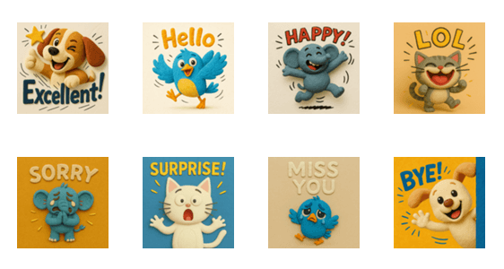 笑ったり、びっくりしたり、ごめんねしたり。粘土でできた可愛い動物たちが、あなたの気持ちをポップに届けます!