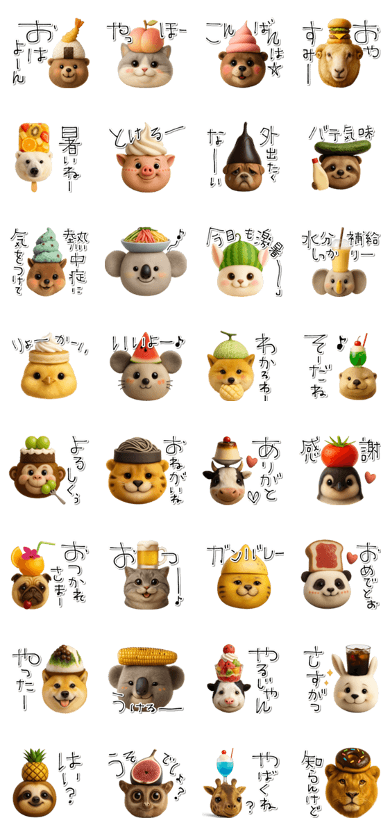 mottoのハッピーアニマルセット♡夏 -LINEスタンプマニア