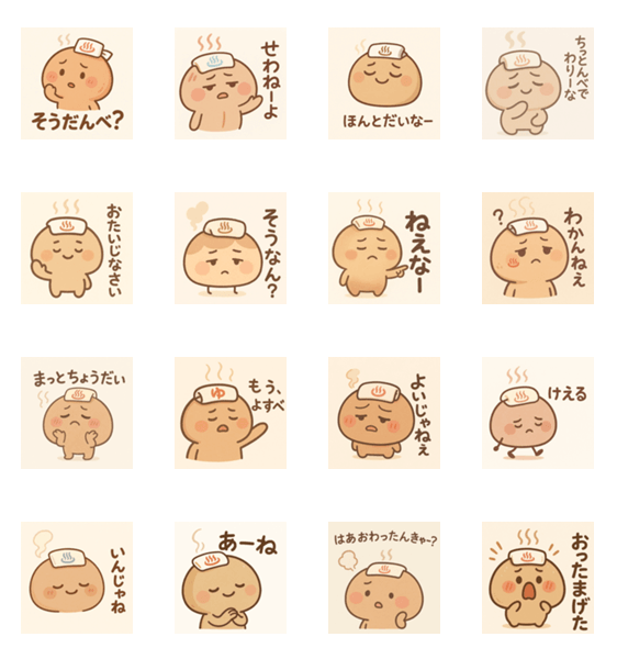 群馬温泉まんじゅうが群馬弁でゆるく話しかける、かわいい方言スタンプです。温泉好きや群馬好きにぴったり!