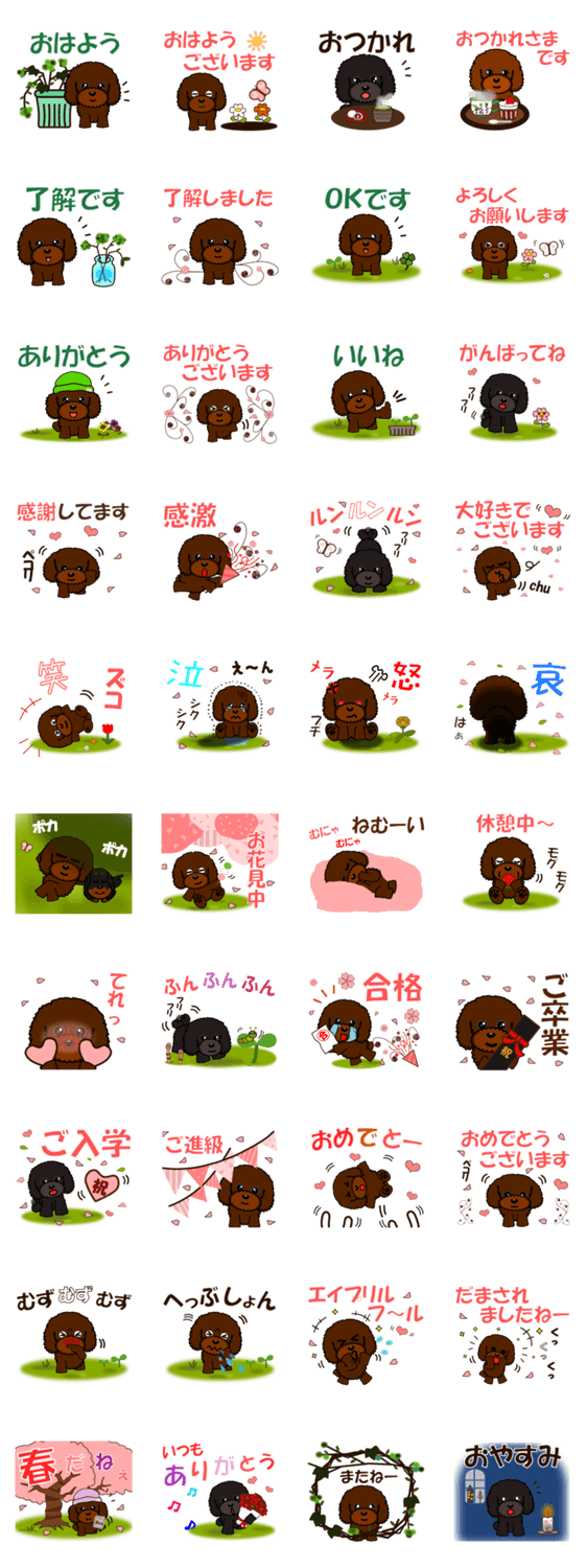 かわいいプードルちゃん(春)です。春ぽっい色合いと春に使えるだろうスタンプになります♪