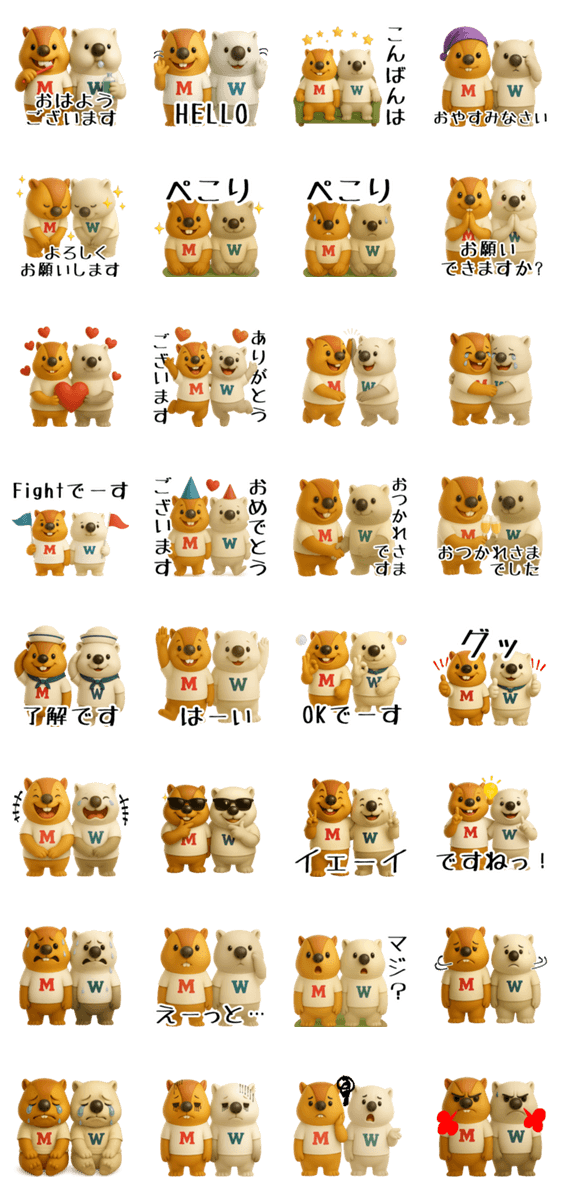 たぶんマーモットとたぶんウォンバットの仲良しスタンプのセットです。毎日使える便利なセットです。