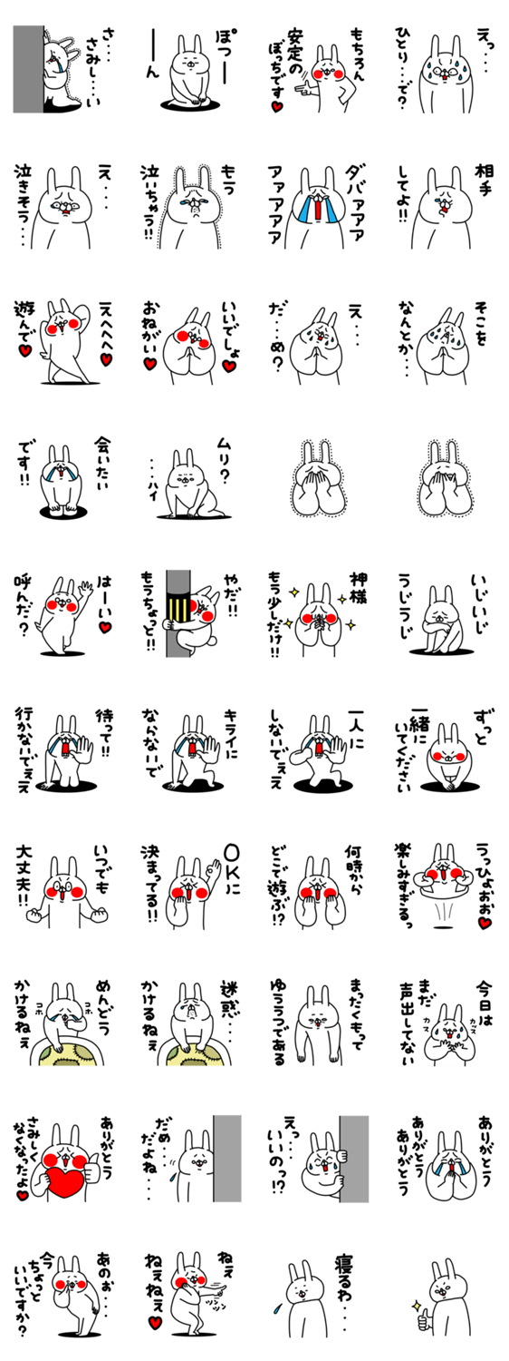 全力でうざい全力でおちょくるあざとかわいいうさぎのさみしんぼスタンプ。かまってちゃんで甘えん坊で会いたがり。家族や友達や恋人に甘えたい一人っ子気質なあなたに捧ぐ