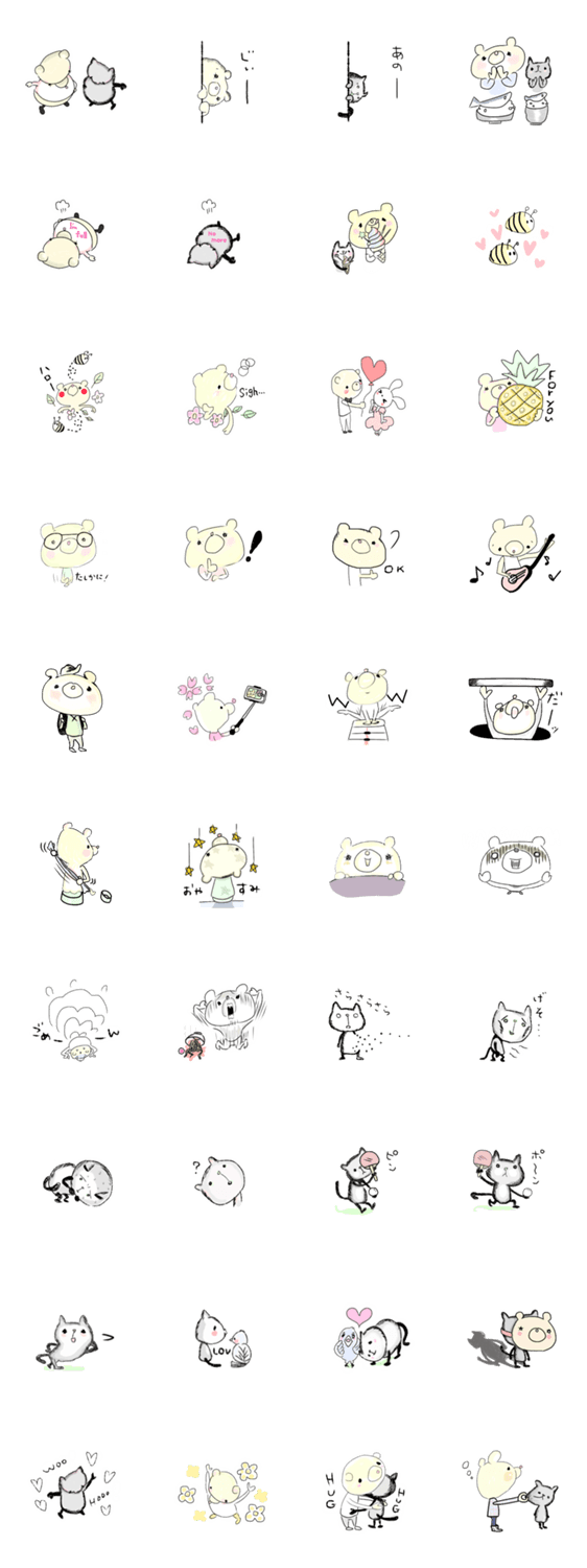 いつでも使えるスタンプです。恋くま&親友のスマ猫たちが「ありがとう」と「LOVE」をゆるっと届けます!