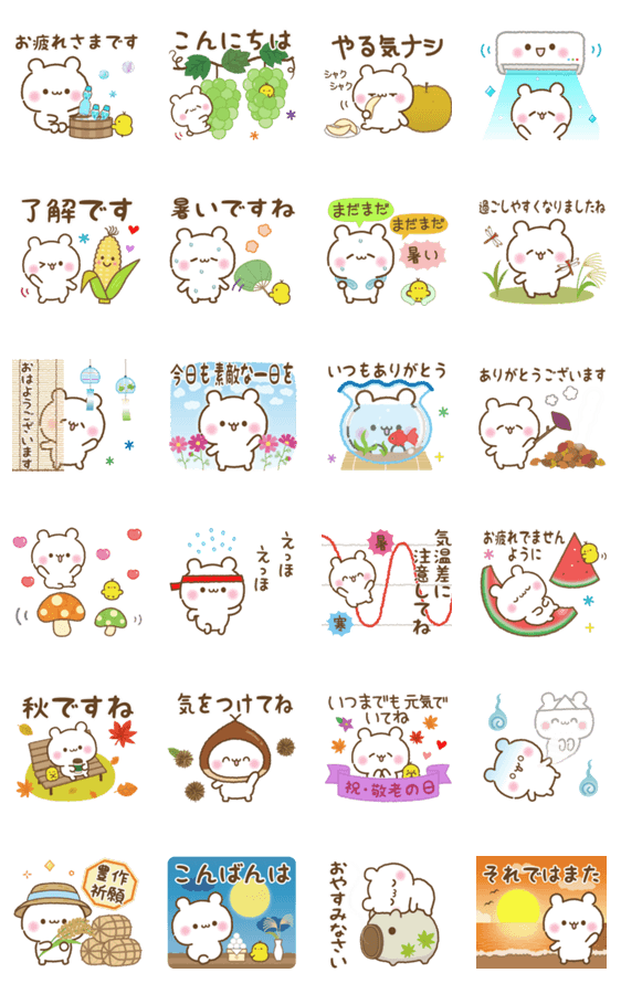 ふんわりタッチのくまさんの夏から秋にかけて使える言葉です。