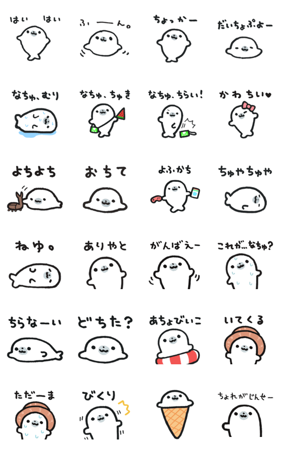 ゆるゆるなアザラシたんスタンプです。可愛すぎて腹が立つ!ぽてぽて♪ かわいい、白、シンプル、可愛い、白い、わかりやすい、ゆるい