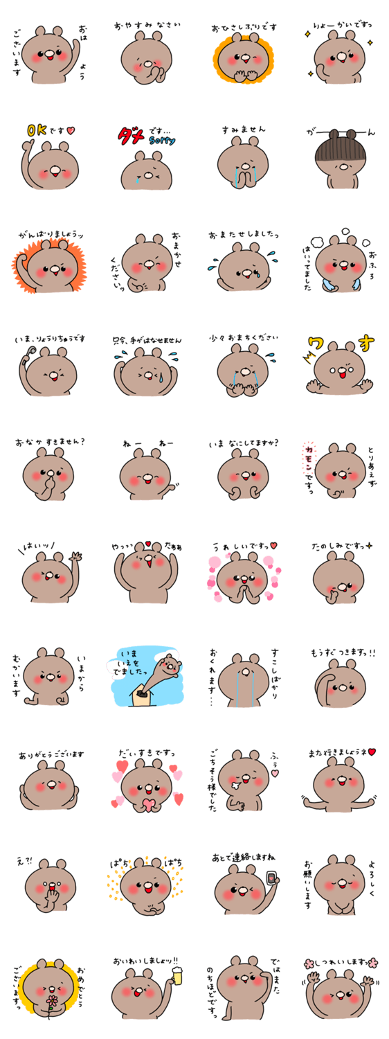茶色いクマさんの使いやすい敬語スタンプです。