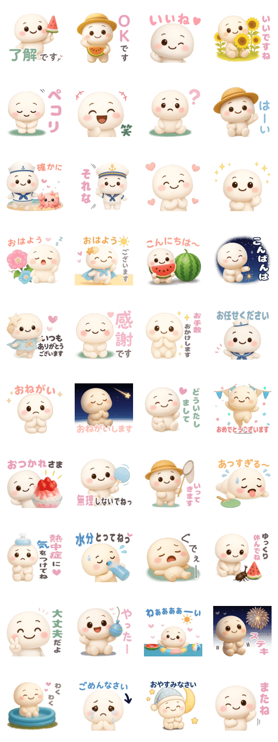 ふわふわ癒し系の「るるも」のやさしさたっぷりの3D風ぷっくりスタンプ。 るるもと一緒に、かわいく優しくほわほわした気持ちで夏をすごそっ♪