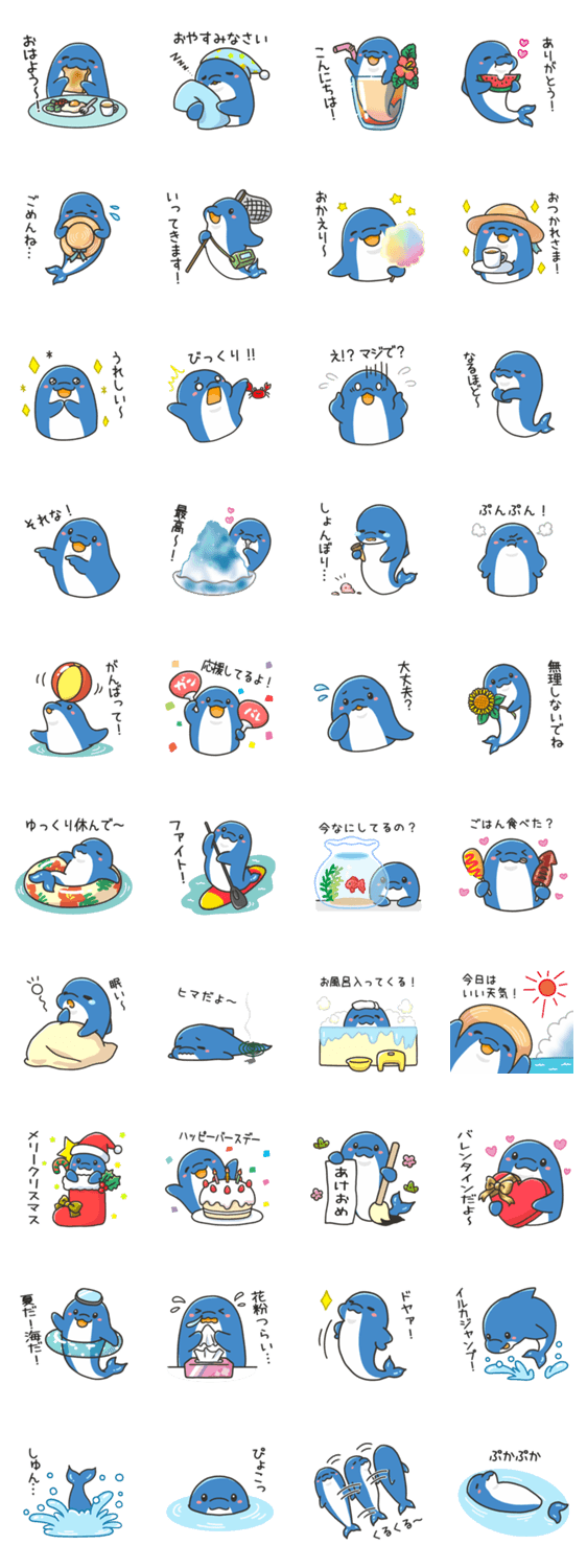 かわいいイルカのスタンプを日常でよく使う言葉で集めました! 上司やお客様など目上の方々にも使いやすいスタンプです。