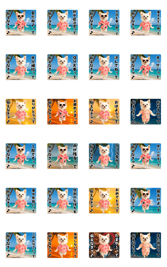 夏、海、ビーチ、アロハチワワが伝えます♡ いぬ/犬/わんこ/動物/かわいい/カワイイ/可愛い/癒し/癒し系/あいさつ/日常会話/使いやすい/暑中見舞い