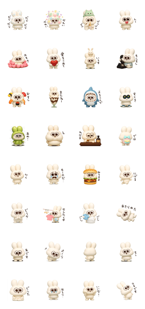 愛おしすぎる3D太っちょうさぎのスタンプです。