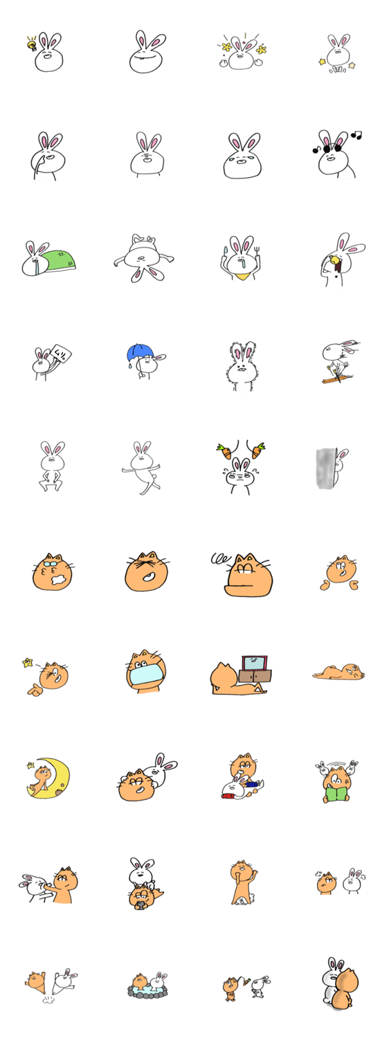 ゆるくてシュールなうさぎさん、ねこさんスタンプ。うさぎさんメイン。