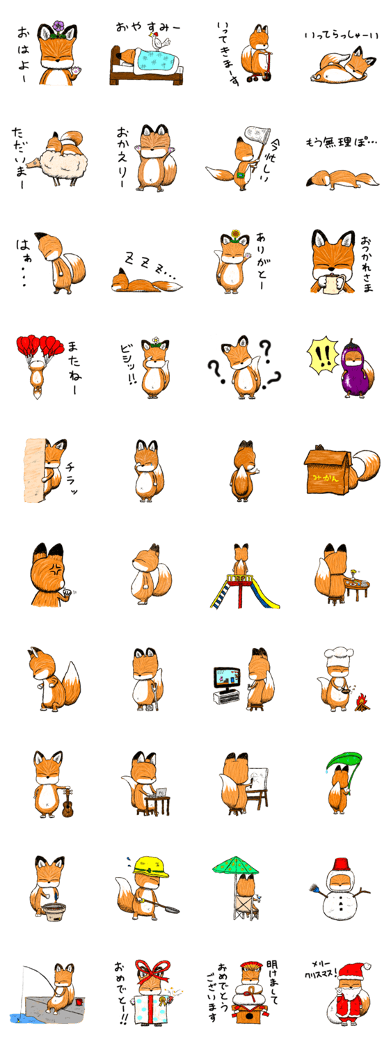 癒し系キタキツネ、シュマリのスタンプです。日常会話に使ってほっこりしてください♪