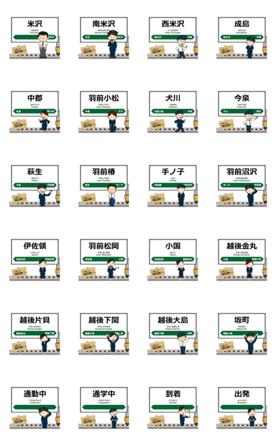 今泉,小国,米沢,南米沢,西米沢,成島,中郡,羽前小松,犬川,萩生,羽前椿,手ノ子,羽前沼沢,伊佐領,羽前松岡,越後金丸,越後片貝,越後下関,越後大島