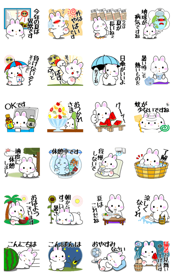 ぽっちゃりウサギのスタンプで異常な夏の猛暑を乗り切りましょう。
