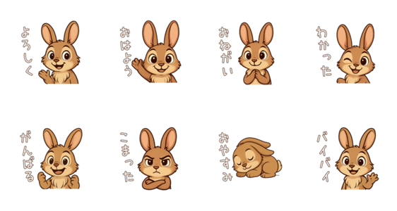 ふわふわのウサギが、あなたの気持ちをやさしく届けてくれます。 あいさつ、ありがとう、がんばってなど、毎日の会話にぴったり!