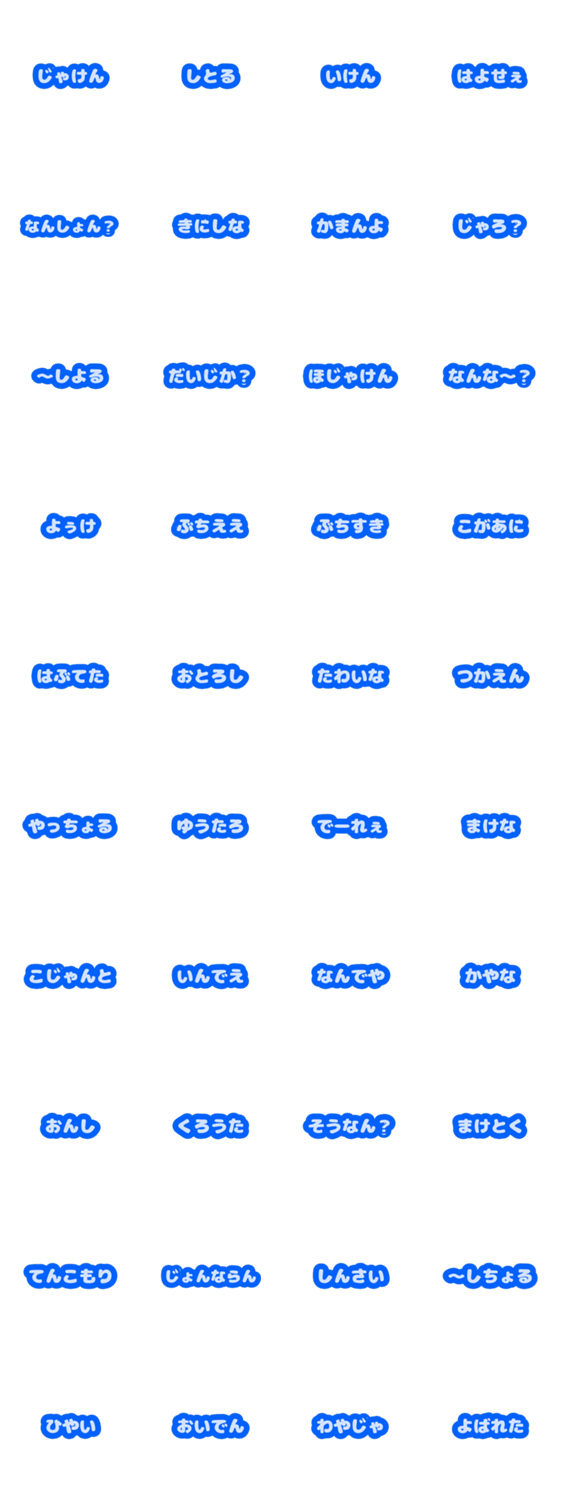 中国・四国の方言やあったかい言葉をブルー文字で!背景なしでトークにぴったりの40種類を収録♪