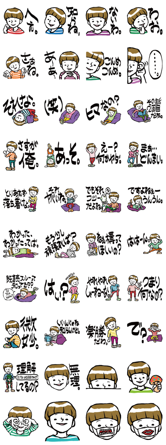 マッシュルームカットが可愛い男の子「てるお」のちょっとウザい返信用スタンプ。仲良しな友達と一緒に使おう!使いすぎにご注意!