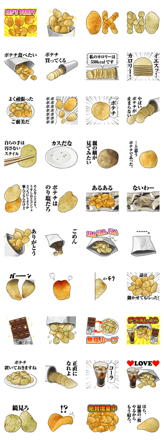 みんな大好き定番お菓子のポテトチップス。お供にコーラやチョコもご用意しています。デブ活にどうぞ!