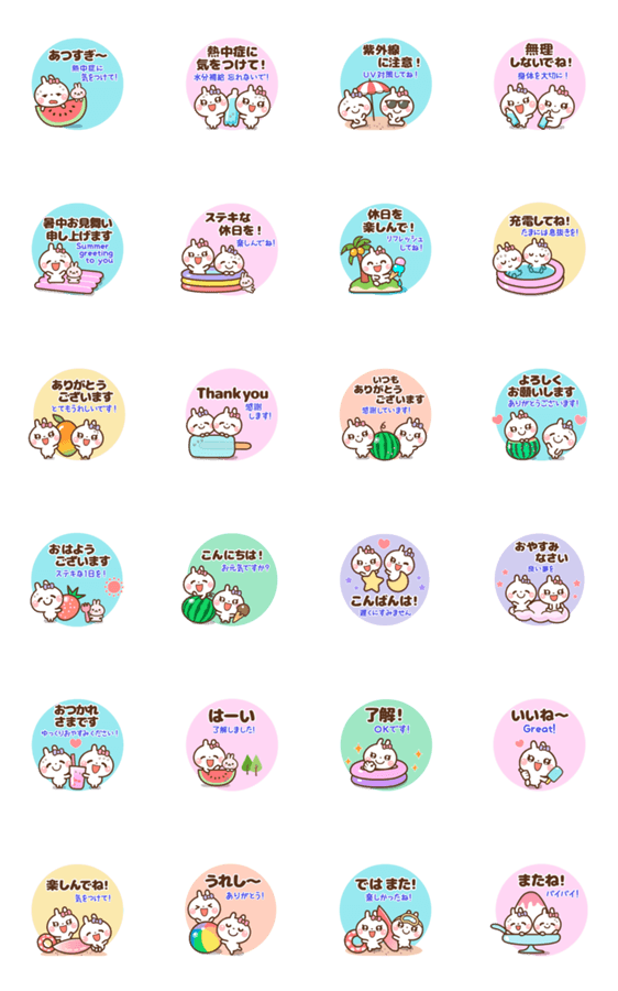 夏の毎日によく使うメッセージを集めたプチ耳BABYのW敬語(長文)スタンプです♪暑中見舞いのメッセージ付きですよ〜♫