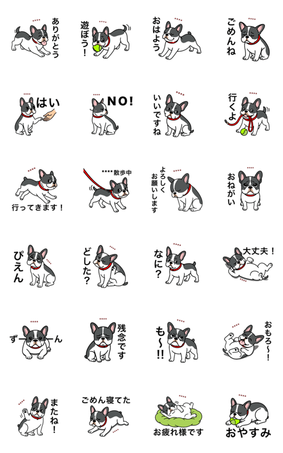 | スタンプ説明 | 愛犬の名前が入れられる!フレンチュブルドッグパイドバージョン1 |
