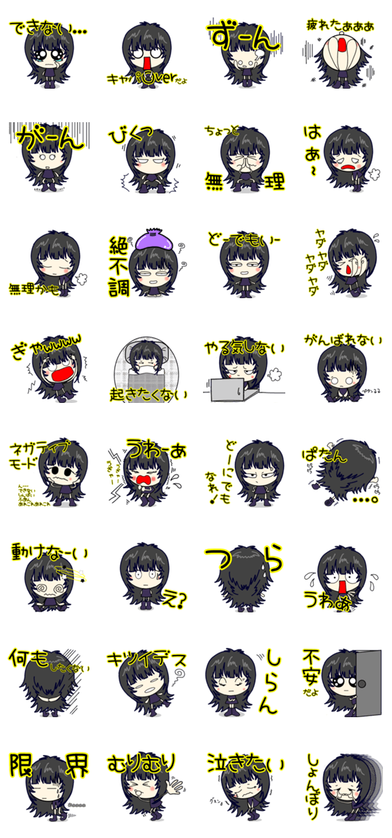 ウルフカットのウルフガール❤︎ ネガティブモードのスタンプです♪