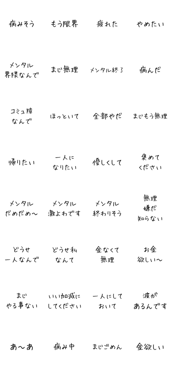 日常で使える、メンタル不安定界隈のスタンプです。Z世代のあなたに。