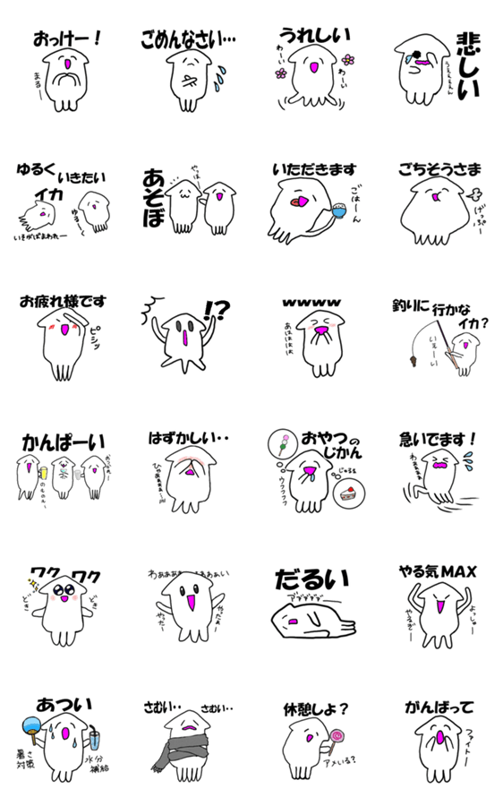 ゆるくいきたいイカの挨拶と日常スタンプ